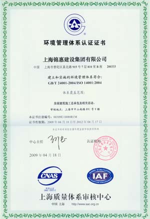 2009年2月,上海質(zhì)量體系審核中心對錦惠公司的質(zhì)量、環(huán)境和職業(yè)健康安全管理手冊和程序文件實(shí)施審核,通過(guò)了上海質(zhì)量審核中心ISO9001:2000、ISO14001、GB/T28001“三標一體化”管理體系認證的復評審核。